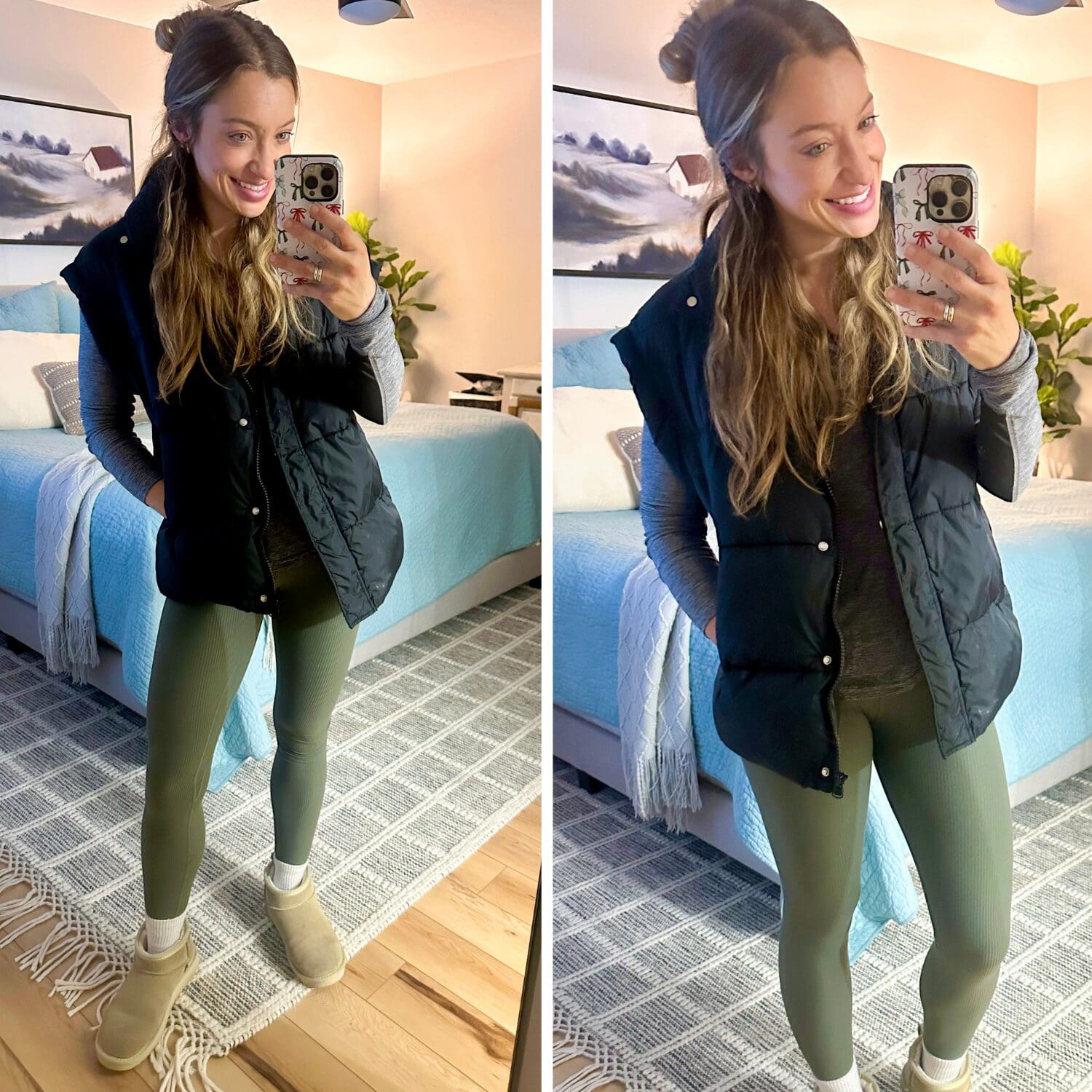 Vest [wearing XS] // Crewneck [fits oversized, wearing XXS] // Leggings [wearing XS, Short] // Sneakers