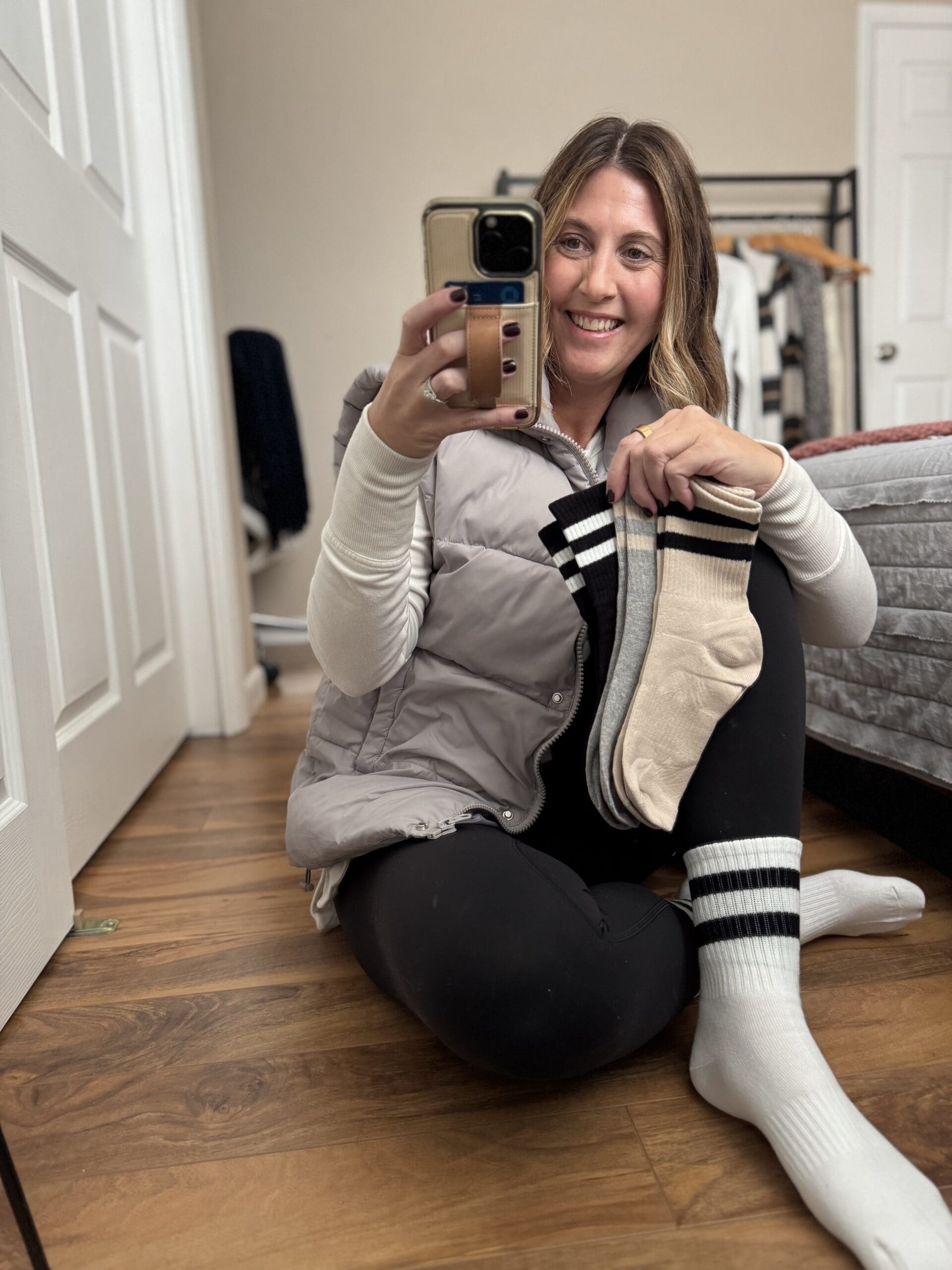 Vest [true to size for oversized fit, wearing M] // Sweatshirt [true to size, wearing M] // Leggings [true to size, wearing M] // Socks