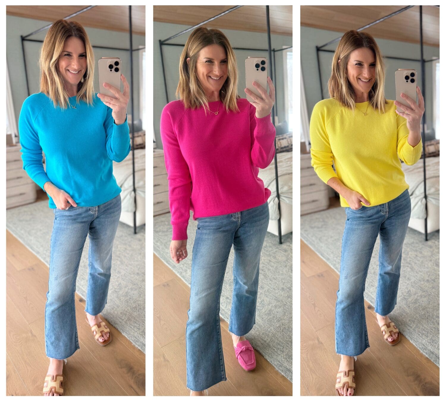 Knit Sweater // Wide Leg Jeans // Flare Jeans [true to size, wearing in 27] // Sandals [true to size] // Use code YELLOW15 for 15% off!