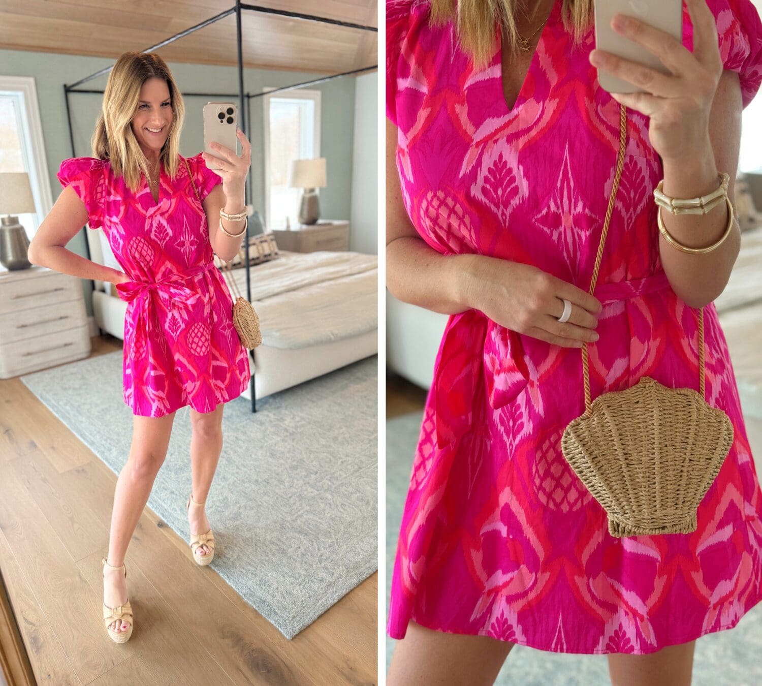 Dress [true to size, wearing in Small] // Seashell Crossbody // Wedges [true to size] // Use code YELLOW15 for 15% off!