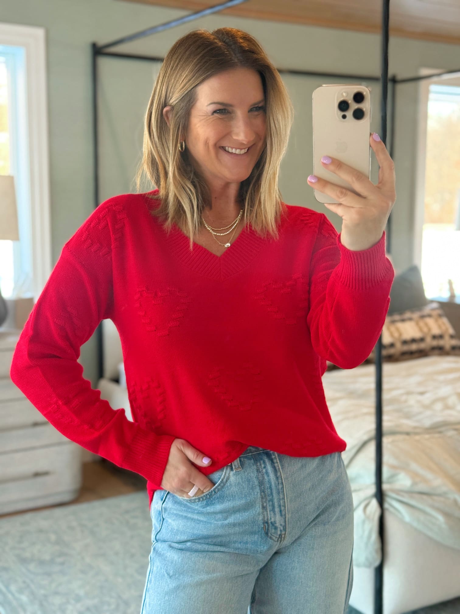 Embroidered Heart Sweater [true to size, wearing in small in Z Dark Red]