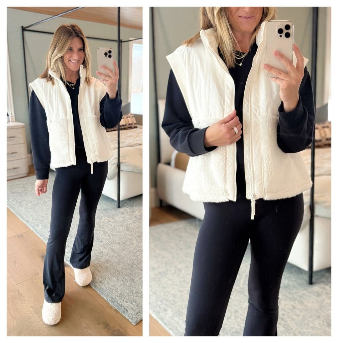Vest [true to size, wearing in S] // Leggings [true to size, wearing in S] // Black Sweatshirt [true to size, wearing in S] // Slippers [size up one]