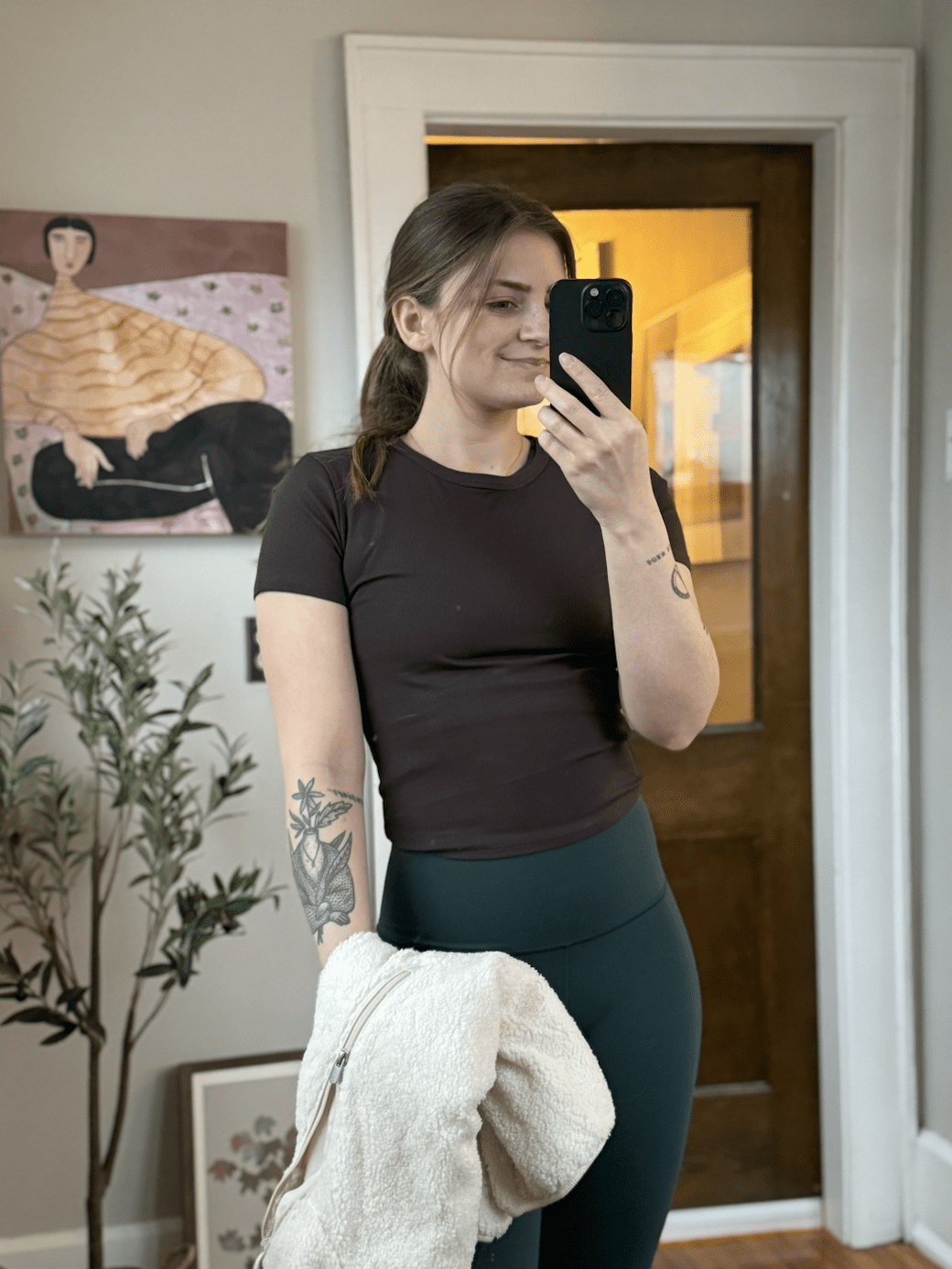 Vest [size up one] // Ribbed Tee [true to size] // Elation Leggings [true to size]