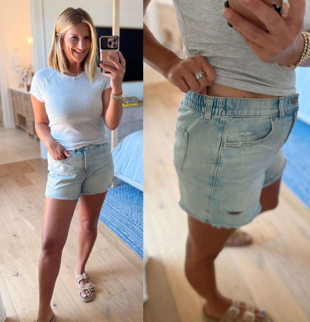 Pull On Denim Shorts [TTS, size down if in between wearing Small]